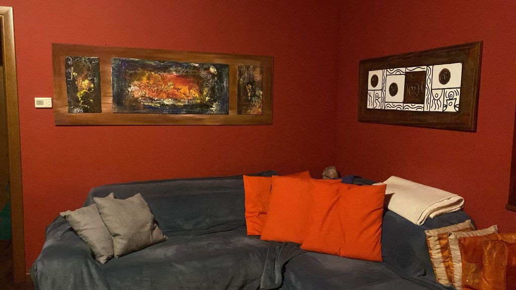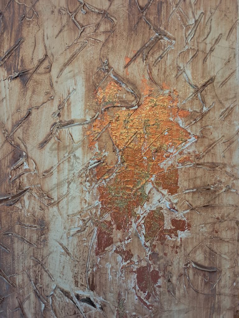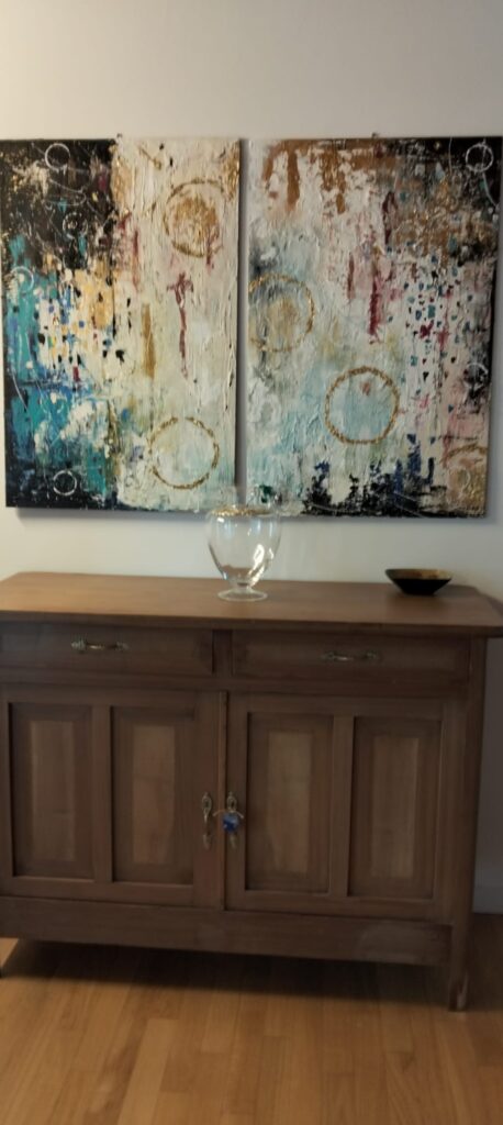 Quadri artistici moderni, a olio, materici, dipinti con spatole e pennelli e con l’utilizzo di vari materiali: colori acrilici, tempere, vernici metallizzate, garze gessate, inserti di foglia oro ecc. Tutti i quadri sono rifiniti con uno strato protettivo di vernice UV per proteggere dalla luce solare e dai danni causati dalla polvere. Ogni quadro è datato e firmato sul davanti e sul retro, garantendo l’autenticità dell’opera.